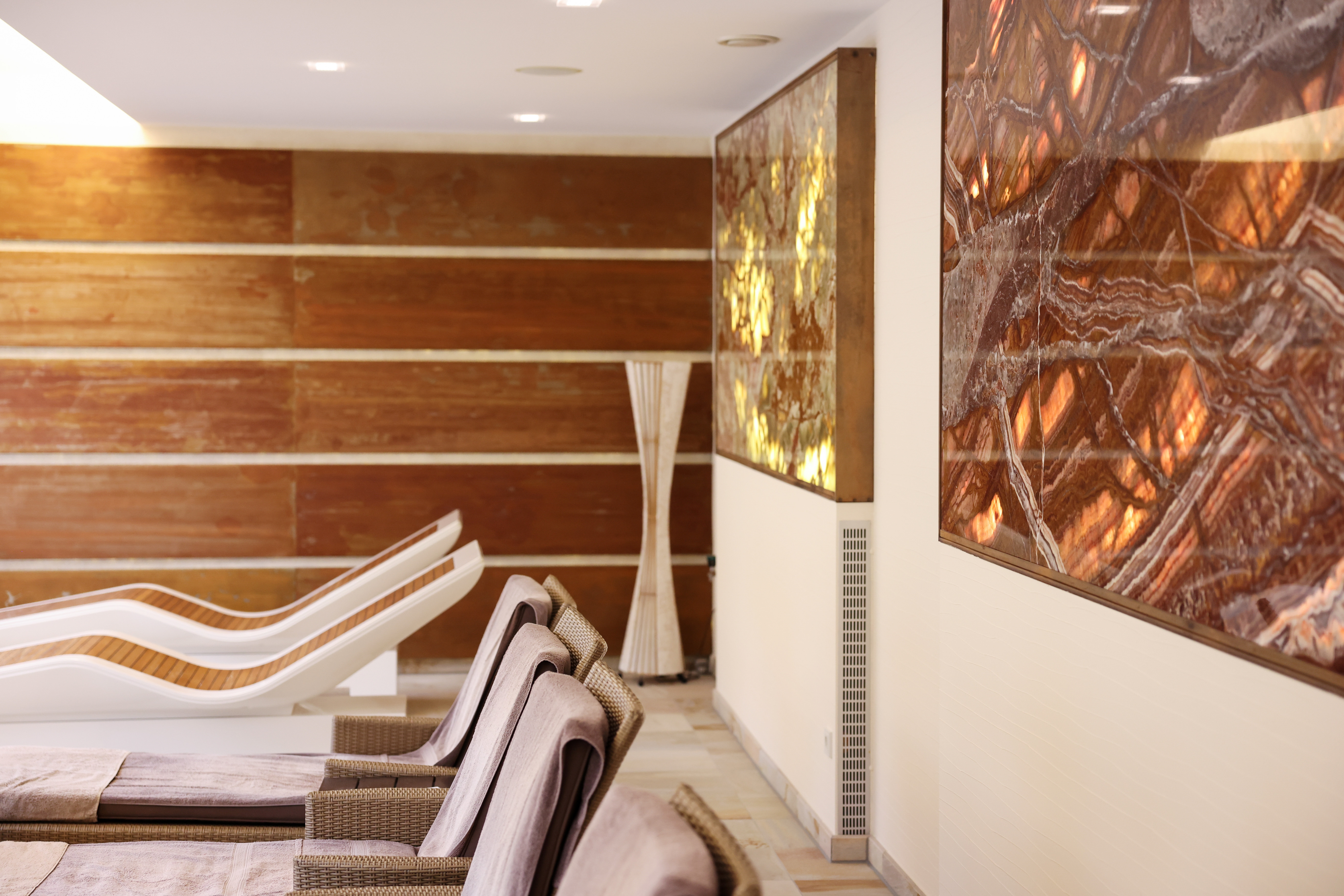 Wellness- und Massagebereich mit Sanotherm-Liegen, Gesichtspflege, klassischer Massage, Hot Stone, Ayurveda, Lomi-Lomi-Massage.