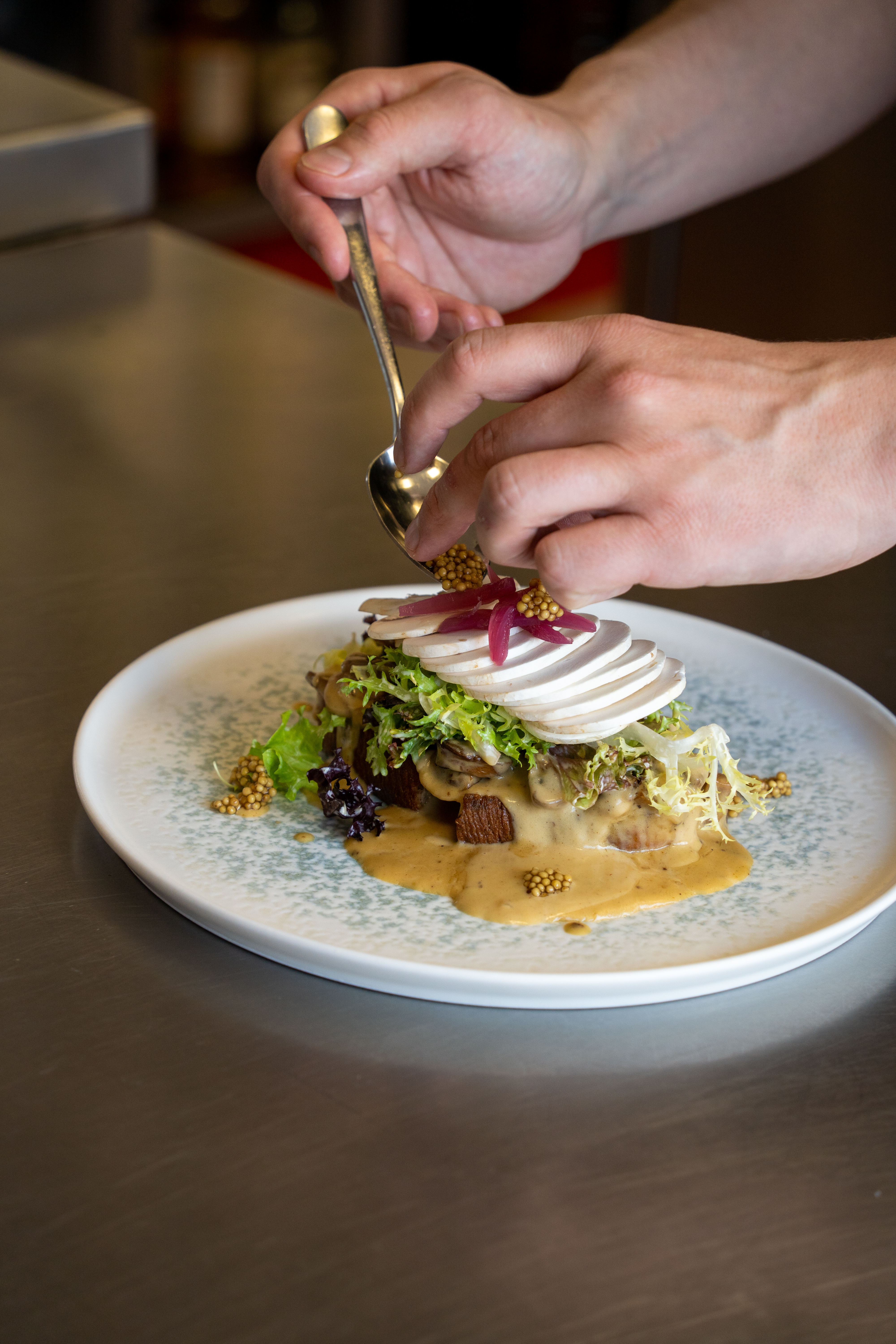 Auf der Terrasse werden bei schönem Wetter tagsüber, regionale, frische hausgemachte Gerichte und Getränke serviert. Auf der Speisekarte stehen Gourmetgerichte, traditionelle französische Rezepte, die mit frischen Produkten von lokalen Erzeugern zubereitet werden.