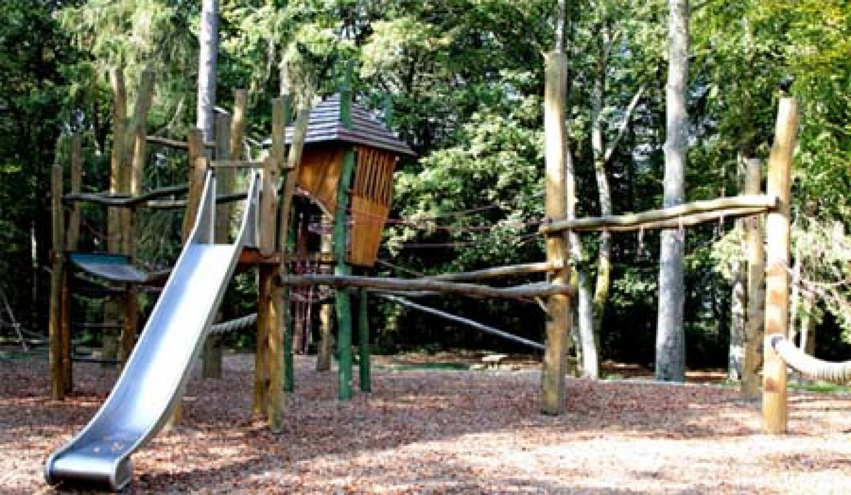 Adventure playground Martbusch. Shady playground in the forest for big and small explorers.