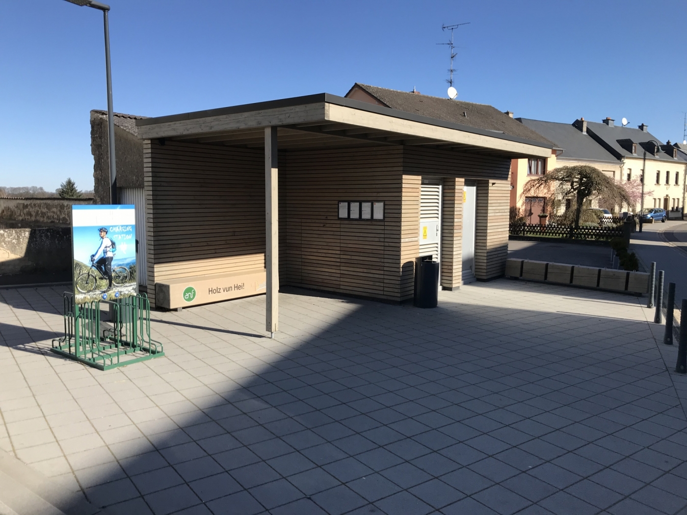 Des stations de recharge pour vélos électriques sont disponibles sur la place du village au centre de Berdorf, juste à côté de l'arrêt de bus.