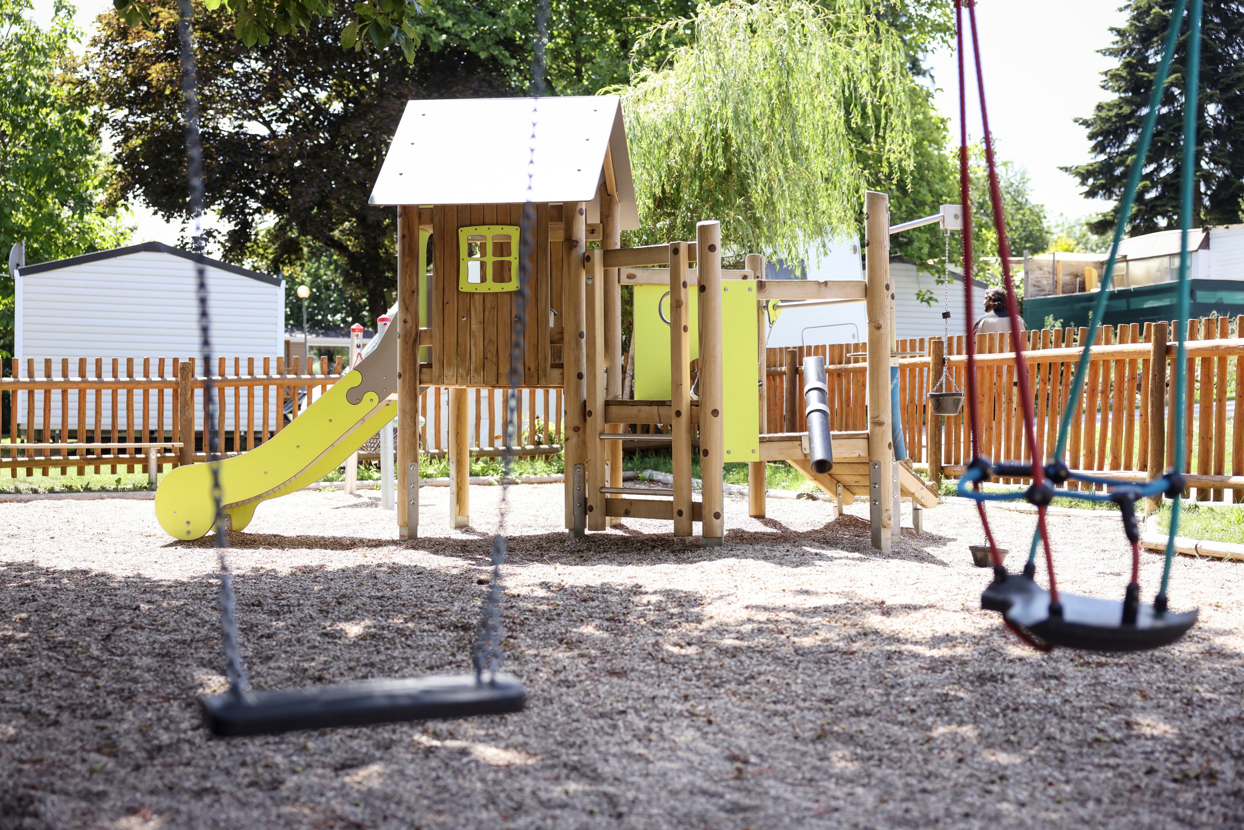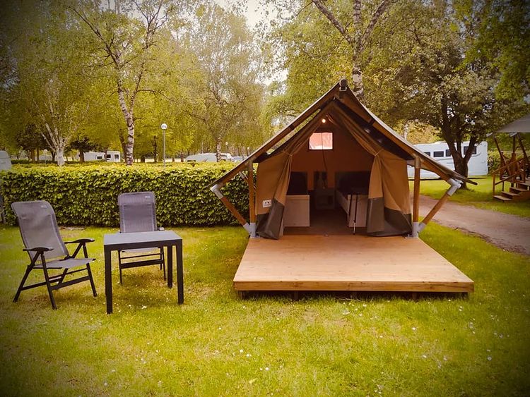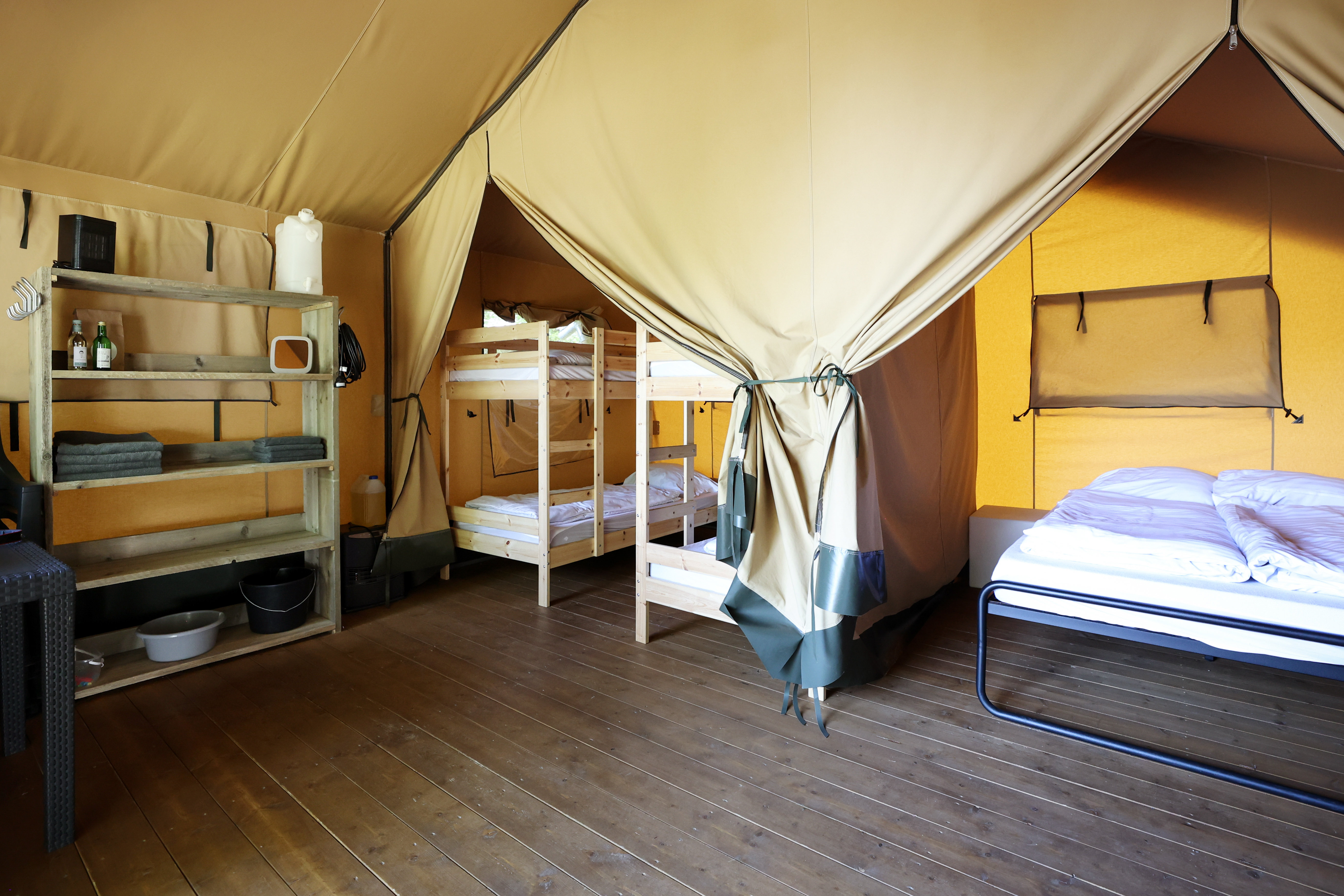 Safaritenten, stacaravans, speeltuinen, animatie voor kinderen in de zomer.